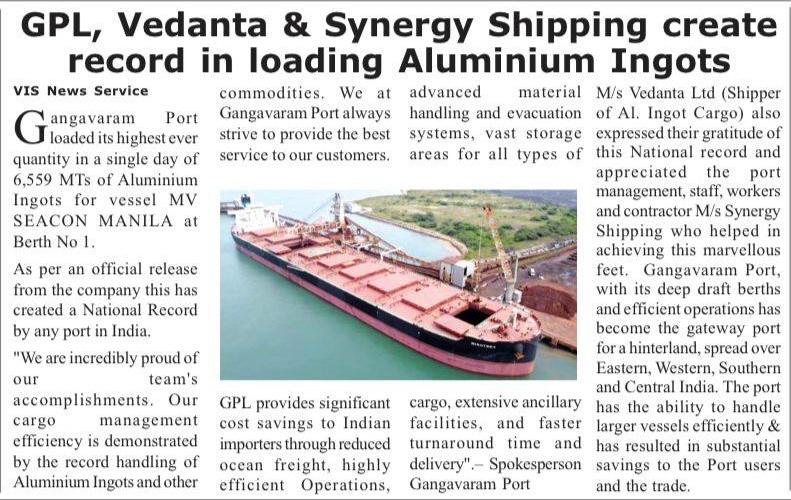 The Port of Visakhapatnam has established an all –